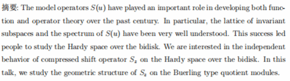 报告题目:The compressed shift operators on Hardy space over the bidisk