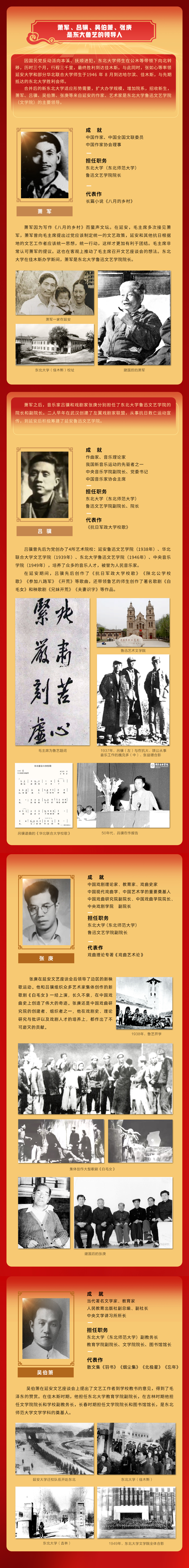 近期,党委宣传部又推出了这部“光辉东师”系列之《参加延安文艺座谈会的东师人》纪录片,通过影像追忆了15位东师早期创建者在延安、东北及新中国建设期间的革命经历、艺术创作和开展文化教育事业等的情况。