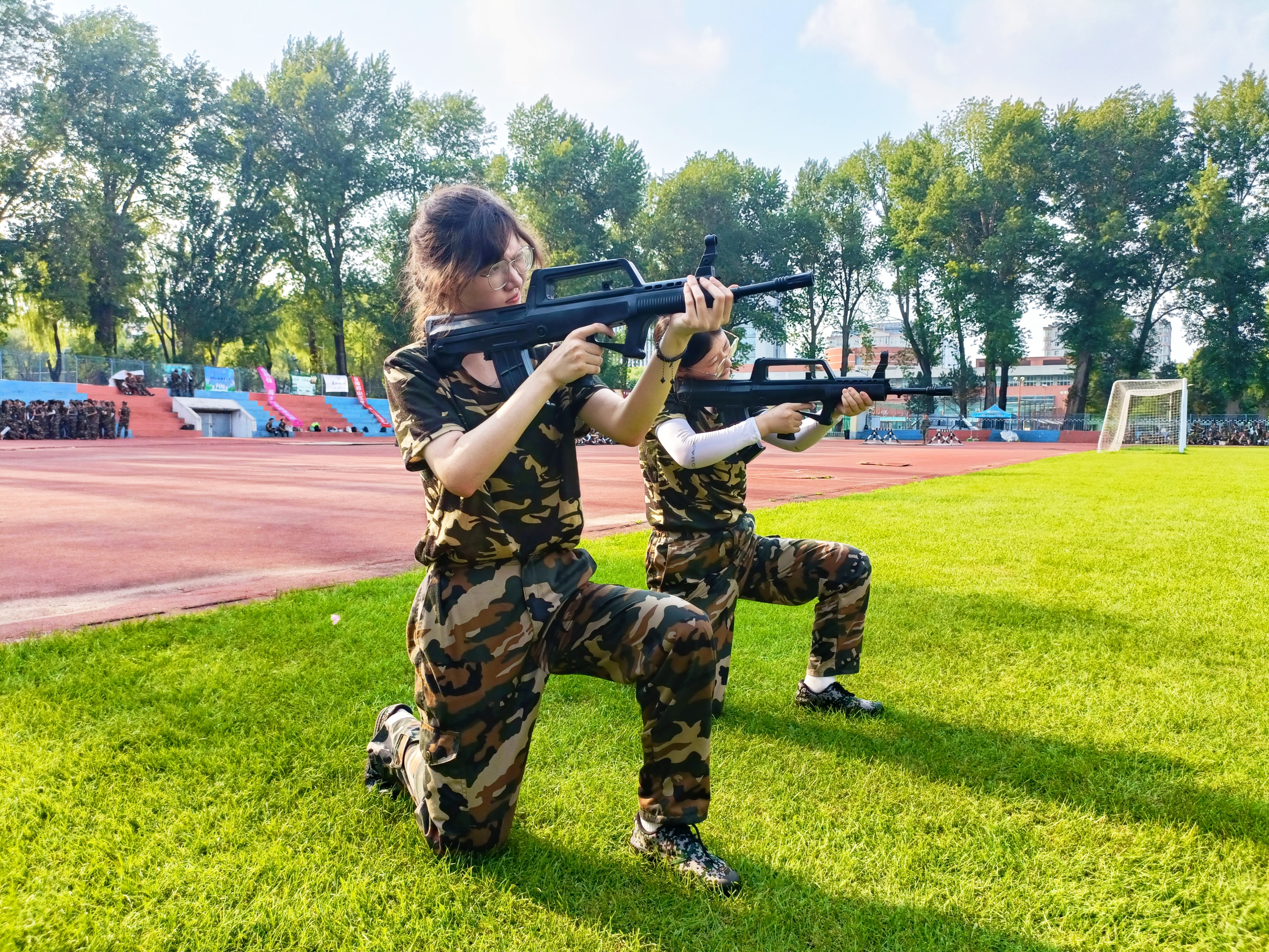 “军训中我最大的成长就是坚韧,看到教官们的坚毅果敢、同学们的坚持不懈,整个过程中没有任何人叫苦叫累,没有一个人牢骚抱怨。”体育学院、物理学院的两位同学如是说道,“这些都在感染着我们,带动我们也努力成为一个像真正的军人一样自律而坚定的人。”
