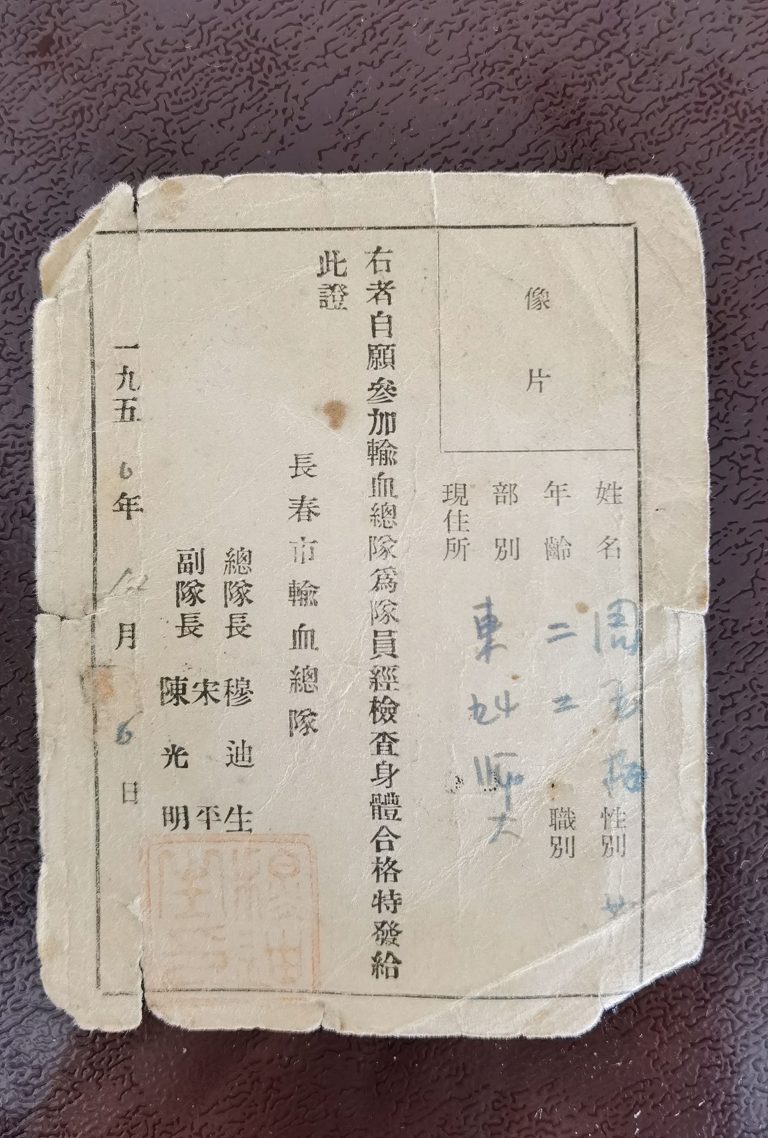 白皋赴沈阳学习之前,与未婚妻周玉梅去照相馆照了一张合影,未等照片洗出来即动身去沈阳学习,这一别就是近4年。照片洗出来后,周玉梅取出一张合影寄给白皋,并在照片背面写字寄语: