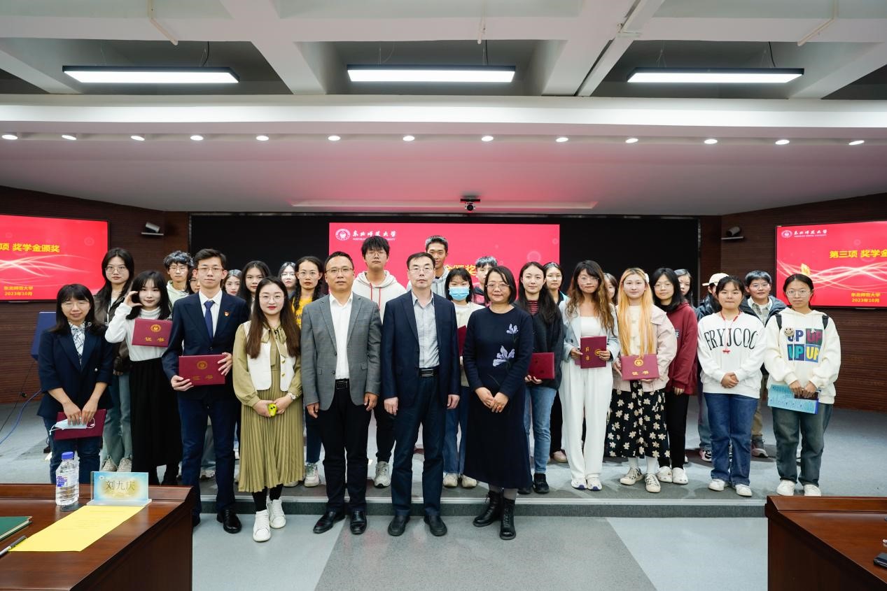 10月9日,由国际合作与交流处主办的“留学奖学金颁奖典礼暨留学经验分享会”在自由校区综合办公楼七楼会议室举行。党委副书记、纪委书记刘九庆出席会议,国际合作与交流处处长张景萍出席会议并为获奖同学颁奖。