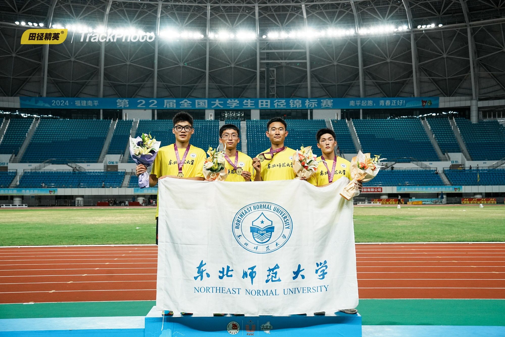 我校学生在本次比赛中勇创佳绩,展现了我校体育教育事业的雄厚实力。体育学院2021级运动训练专业学生王冠麟、何世博及2023级运动训练专业学生王营、吴旭飞获得4×400米丁组冠军,同时打破原赛会3分09秒96的纪录,创造全国年度第10的好成绩;2022级运动训练专业苏天浩获得丙组铅球银牌。