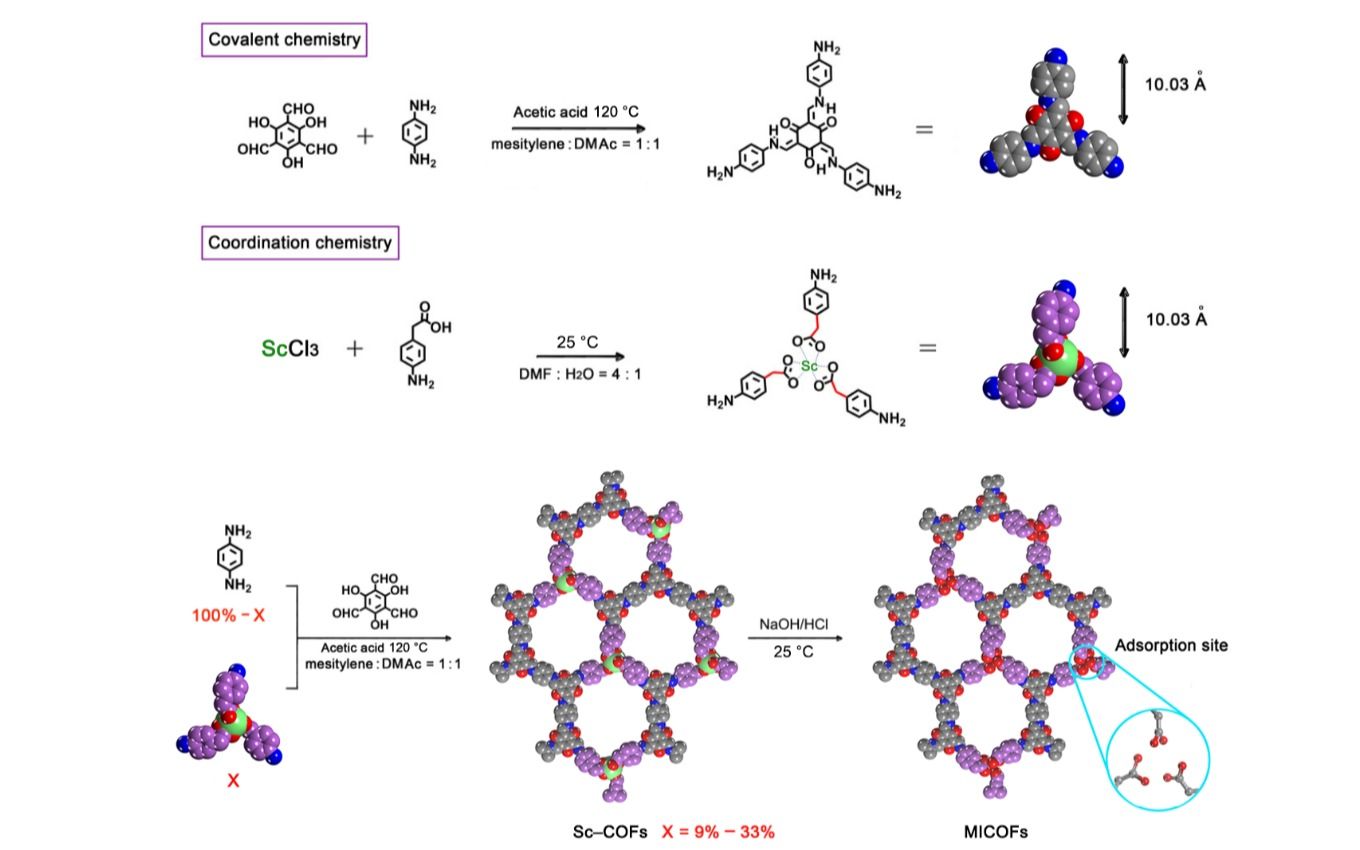 近期,化学学院朱广山教授课题组合成了一种三个羧酸与钪离子的配合物,其立体构型与多孔骨架材料的次级结构单元完全一致,采用同构替换的方法将离子配合物固载到多孔骨架材料上,洗脱掉配位离子之后就得到了钪离子印迹多孔材料(如图)。协同配位热力学和水合离子动力学的差异,实现了专一性的钪金属离子吸附。图说:将配位键制备的钪金属配合物与共价键链接的分子结构片段进行按比例替换,洗脱掉钪离子模板后制得分子印迹共价有机多孔材料。...